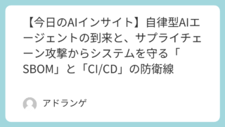 AI Insight 【今日のAIインサイト】自律型AIエージェントの到来と、サプライチェーン攻撃からシステムを守る「SBOM」と「CI/CD」の防衛線