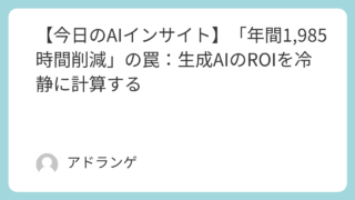 AI Insight 【今日のAIインサイト】「年間1,985時間削減」の罠:生成AIのROIを冷静に計算する