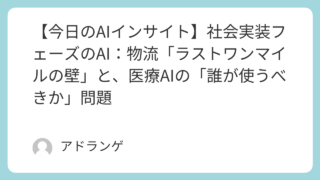 AI Insight 【今日のAIインサイト】社会実装フェーズのAI:物流「ラストワンマイルの壁」と、医療AIの「誰が使うべきか」問題