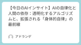 AI Insight 【今日のAIインサイト】AIの自律化と人間の依存:透明化するアルゴリズムと、拡張される「身体的自律」の最前線